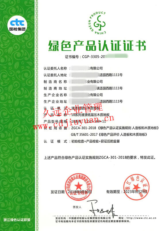 綠色產(chǎn)品認(rèn)證證書